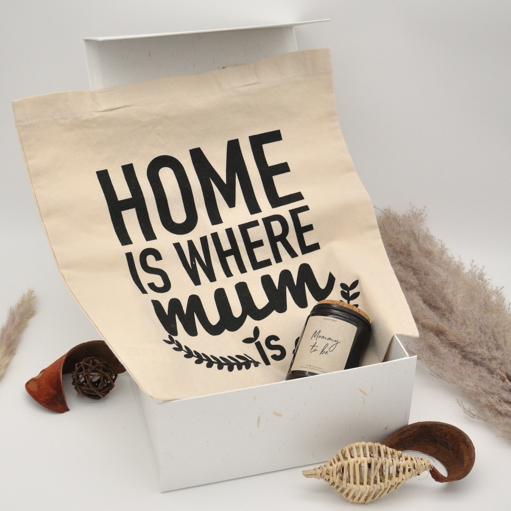 - Carrying bag 'Home is where mum is': A 100% cotton carrying bag specially made for mums. Dimensions - 38cm x 42cm. Capacity - 10 liters.